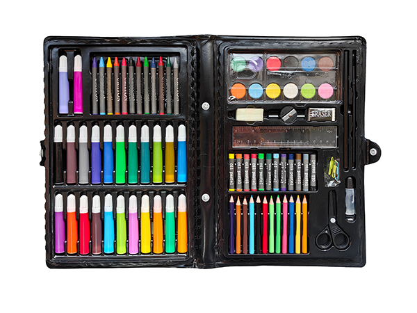• 24 PCS markers,12 PCS color cakes,12 PCS crayons,12 PCS oil pastels,12 PCS color pencils,1 PC HB pencil,1 PC brush,1 PC glue,1 PC stapler,1 PC scissor,1 PC eraser,1 PC ruler,1 PC sharpener,1 PC palette,20 PCS clips